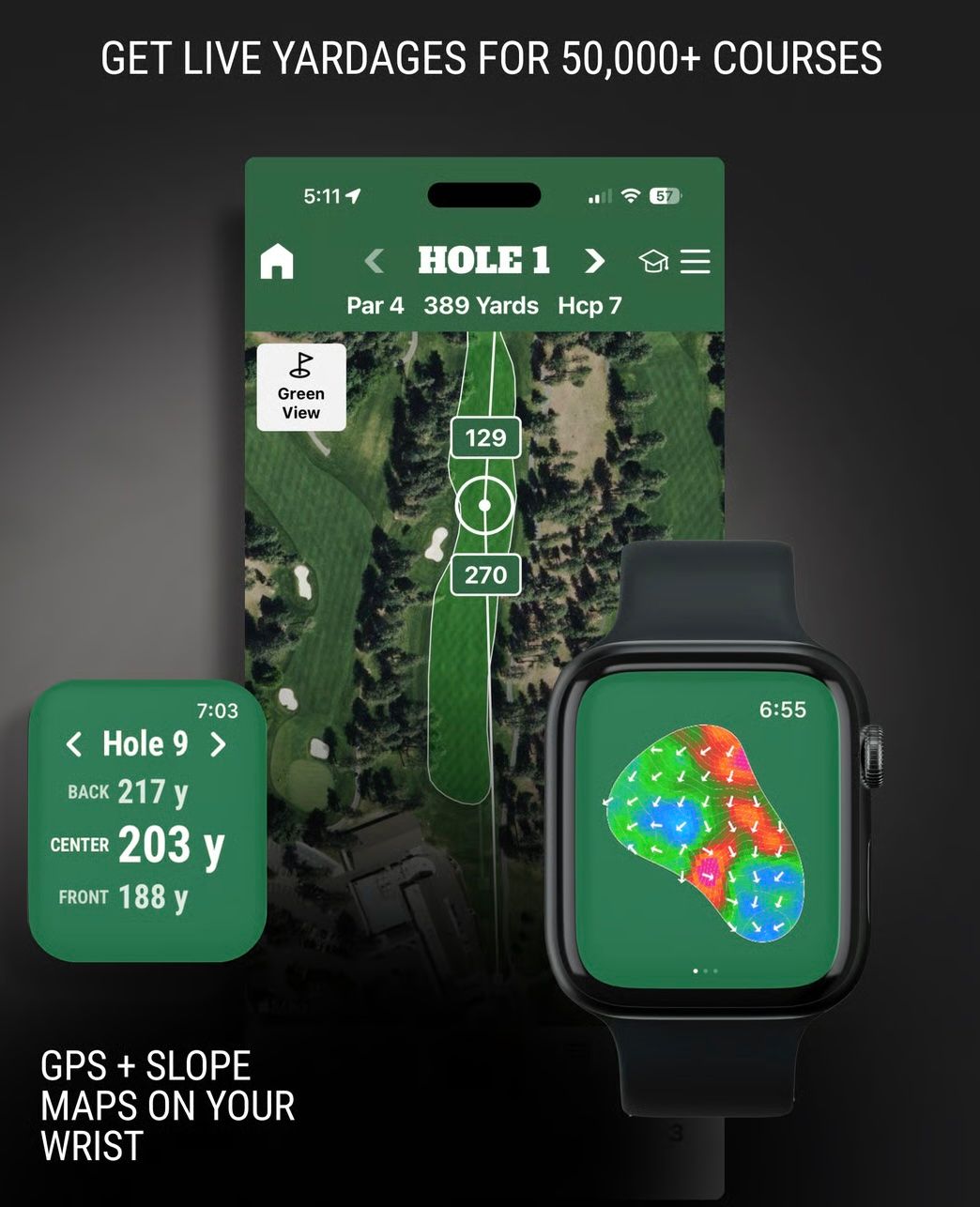 WhyGolf is a newer kid on the block and boasts some incredible features in their app (in addition to their great line of training aids). Their GPS app delivers all the features you want, including precise yardages for 50,000+ courses and detailed slope maps of greens. It even integrates with an Apple Watch. You can even keep track of your swing thoughts.